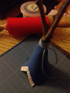 Puis, enroulez un morceau de ficelle pour fixer les brindilles et la toile du tipi ensemble, et nouez-le en laissant suffisamment de longueur pour y accrocher une plume par la suite.